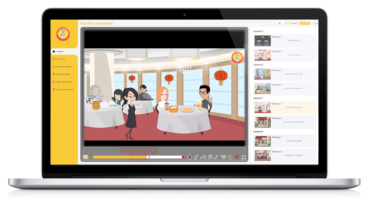 Al technology tests learner’s pronunciation. Provides feedback immediately, effectively improves learner’s tone and pronunciation. Build skills and practice vocabulary with customized flash cards. Multiple functions and tools like animated stroke order display with thousands of possibilities.Engaging, interactive animated storytelling video lessons with high frequency vocabulary, imagery, intonation, pronunciation, melody, text, and data to serve a variety methods for differentiated learning. Interact and practice with Alexa!